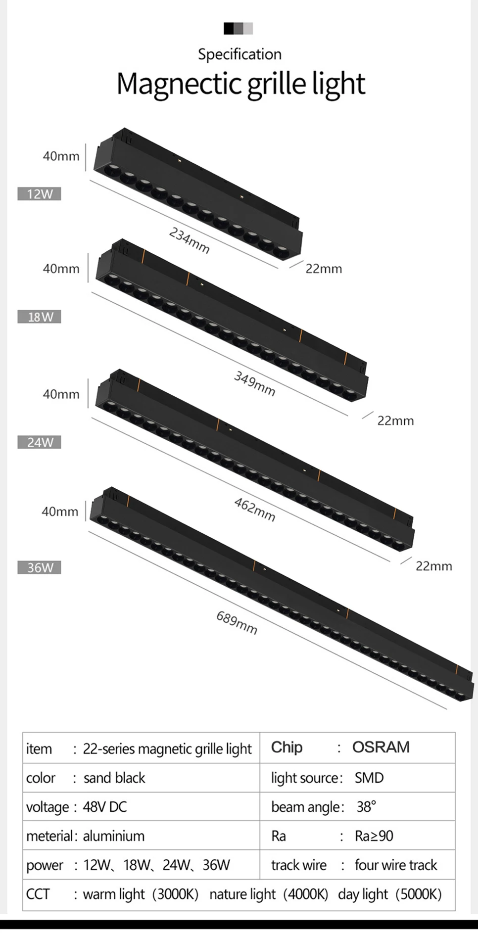 - Model: Magnetic Track Light 48V Magnet Spotlight Dimmable Floodlight Da